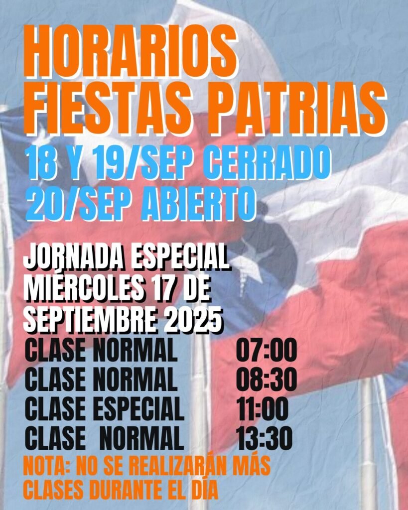 MIÉRCOLES 17/SEP: CLASE NORMAL 07:00 CLASE NORMAL 08:30 CLASE ESPECIAL 11:00 CLASE NORMAL 13:30 18…